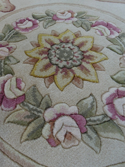 Ковры ткутся неприсущим китайским ткачам двойным, закрытым узлом, что придает особую прочность и долговечность.Комбинация распушенной и крученой нитей, спокойные пастельные тона, трехуровневая выстрижка (скульптурные ковры), достаточно высокий ворс - вот отличительные черты этой коллекции.Ковер прослужит своим хозяевам более 100 лет.