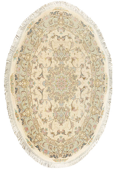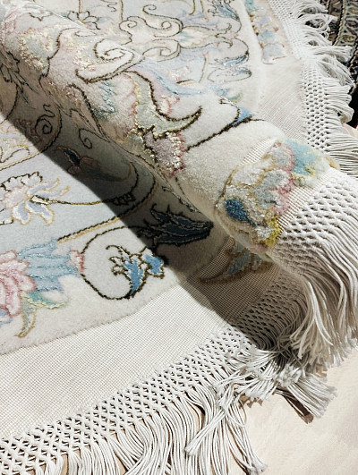 Ковры в сочетании шерсти с шелком из Табриза отличаются аккуратным и кропотливым плетением, вид узла может быть как симметричным, так и асимметричным. Используемые материалы (шерсть, шелк и хлопок) - всегда очень высокого качества. Растительный орнамент, как правило, выполненный на светлой основе, может быть с медальоном в центре или же без него (афшан). Композиции с медальоном, сад, дерево жизни. Кроме того, существует местная композиция, называемая эсуми, предоставляющая собой идущие спирально побеги виноградной лозы, нежные и гибкие, связывающие воедино малые сюжетные мотивы с листьями и цветами.