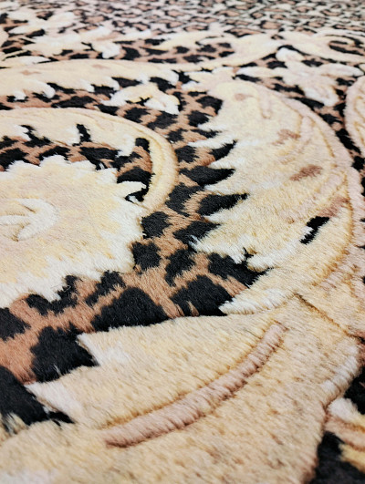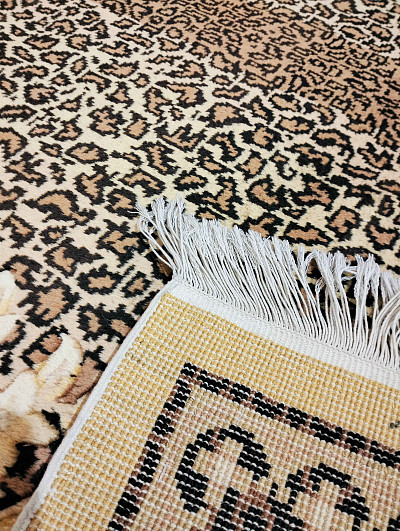 Ворсовая шерсть ковра пропитывается специальными маслами, секрет приготовления которых хранится в строгой тайне - это придает ковру особую прочность и долговечность и благодаря пропитке, ворс ковра имеет неповторимый блеск и перелив сравнимый с коврами из чистого шелка. Ковры этой серии плетет одна единственная фабрика на юге Китая (провинция Тянь Шу), именно поэтому они так редко встречаются.Низкий ворс дает возможность расположить ковер вплотную под дверь с маленьким зазором от пола.