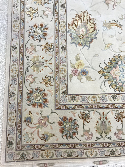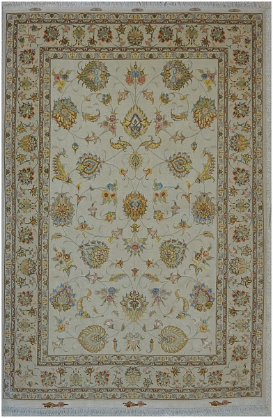 Ковры в сочетании шерсти с шелком из Табриза отличаются аккуратным и кропотливым плетением, вид узла может быть как симметричным, так и асимметричным. Используемые материалы (шерсть, шелк и хлопок) - всегда очень высокого качества. Растительный орнамент, как правило, выполненный на светлой основе, может быть с медальоном в центре или же без него (афшан). Композиции с медальоном, сад, дерево жизни. Кроме того, существует местная композиция, называемая эсуми, предоставляющая собой идущие спирально побеги виноградной лозы, нежные и гибкие, связывающие воедино малые сюжетные мотивы с листьями и цветами.