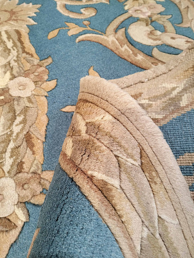 Ковры ткутся неприсущим китайским ткачам двойным, закрытым узлом, что придает особую прочность и долговечность.Комбинация распушенной и крученой нитей, спокойные пастельные тона, трехуровневая выстрижка (скульптурные ковры), достаточно высокий ворс - вот отличительные черты этой коллекции.Ковер прослужит своим хозяевам более 100 лет.