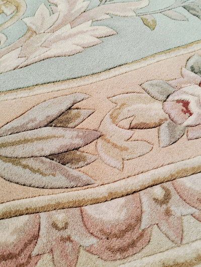 Ковры ткутся неприсущим китайским ткачам двойным, закрытым узлом, что придает особую прочность и долговечность.Комбинация распушенной и крученой нитей, спокойные пастельные тона, трехуровневая выстрижка (скульптурные ковры), достаточно высокий ворс - вот отличительные черты этой коллекции.Ковер прослужит своим хозяевам более 100 лет.
