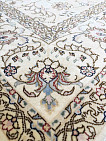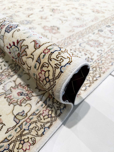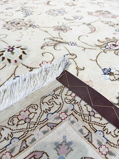 Ковры в сочетании шерсти с шелком из Табриза отличаются аккуратным и кропотливым плетением, вид узла может быть как симметричным, так и асимметричным. Используемые материалы (шерсть, шелк и хлопок) - всегда очень высокого качества. Растительный орнамент, как правило, выполненный на светлой основе, может быть с медальоном в центре или же без него (афшан). Композиции с медальоном, сад, дерево жизни. Кроме того, существует местная композиция, называемая эсуми, предоставляющая собой идущие спирально побеги виноградной лозы, нежные и гибкие, связывающие воедино малые сюжетные мотивы с листьями и цветами.