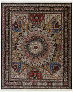 Ковры в сочетании шерсти с шелком из Табриза отличаются аккуратным и кропотливым плетением, вид узла может быть как симметричным, так и асимметричным. Используемые материалы (шерсть, шелк и хлопок) - всегда очень высокого качества. Растительный орнамент, как правило, выполненный на светлой основе, может быть с медальоном в центре или же без него (афшан). Композиции с медальоном, сад, дерево жизни. Кроме того, существует местная композиция, называемая эсуми, предоставляющая собой идущие спирально побеги виноградной лозы, нежные и гибкие, связывающие воедино малые сюжетные мотивы с листьями и цветами.