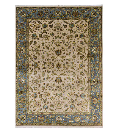 Производя ковры, Индия до сих пор находится под влиянием персидских традиций, однако в то же время ее ковраткачество обладает целым рядом принципиальных отличий. Само оформление отличается натурализмом и чувственностью, в то время как персам свойственны абстрактность, декоративность. Простая композиция рисунка, характерная для ковров из Индии, становится их важным достоинством.