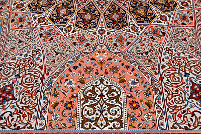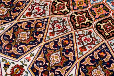 Ковры в сочетании шерсти с шелком из Табриза отличаются аккуратным и кропотливым плетением, вид узла может быть как симметричным, так и асимметричным. Используемые материалы (шерсть, шелк и хлопок) - всегда очень высокого качества. Растительный орнамент, как правило, выполненный на светлой основе, может быть с медальоном в центре или же без него (афшан). Композиции с медальоном, сад, дерево жизни. Кроме того, существует местная композиция, называемая эсуми, предоставляющая собой идущие спирально побеги виноградной лозы, нежные и гибкие, связывающие воедино малые сюжетные мотивы с листьями и цветами.