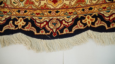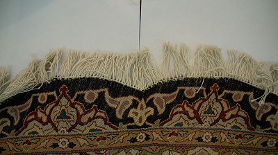 Ковры в сочетании шерсти с шелком из Табриза отличаются аккуратным и кропотливым плетением, вид узла может быть как симметричным, так и асимметричным. Используемые материалы (шерсть, шелк и хлопок) - всегда очень высокого качества. Растительный орнамент, как правило, выполненный на светлой основе, может быть с медальоном в центре или же без него (афшан). Композиции с медальоном, сад, дерево жизни. Кроме того, существует местная композиция, называемая эсуми, предоставляющая собой идущие спирально побеги виноградной лозы, нежные и гибкие, связывающие воедино малые сюжетные мотивы с листьями и цветами.