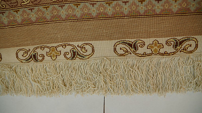 Ковры в сочетании шерсти с шелком из Табриза отличаются аккуратным и кропотливым плетением, вид узла может быть как симметричным, так и асимметричным. Используемые материалы (шерсть, шелк и хлопок) - всегда очень высокого качества. Растительный орнамент, как правило, выполненный на светлой основе, может быть с медальоном в центре или же без него (афшан). Композиции с медальоном, сад, дерево жизни. Кроме того, существует местная композиция, называемая эсуми, предоставляющая собой идущие спирально побеги виноградной лозы, нежные и гибкие, связывающие воедино малые сюжетные мотивы с листьями и цветами.