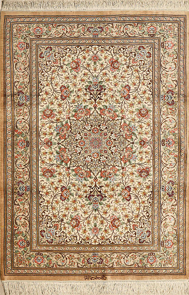 Купить кум - значит купить ковер выдающегося качества и красоты. Ковры из иранского города Кум стоят, как правило, дороже других персов. В Куме делают совсем немного больших ковров, но если уж делают, то такие ковры требуют работы нескольких высококвалифицированных ткачей в течение нескольких лет. Отличительным признаком кума служит использование бирюзового, черно-золотого, небесно-голубого цветов.