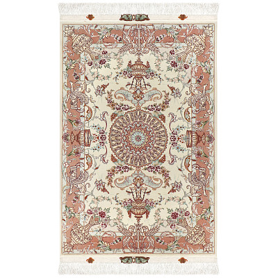 Ковры в сочетании шерсти с шелком из Табриза отличаются аккуратным и кропотливым плетением, вид узла может быть как симметричным, так и асимметричным. Используемые материалы (шерсть, шелк и хлопок) - всегда очень высокого качества. Растительный орнамент, как правило, выполненный на светлой основе, может быть с медальоном в центре или же без него (афшан). Композиции с медальоном, сад, дерево жизни. Кроме того, существует местная композиция, называемая эсуми, предоставляющая собой идущие спирально побеги виноградной лозы, нежные и гибкие, связывающие воедино малые сюжетные мотивы с листьями и цветами.