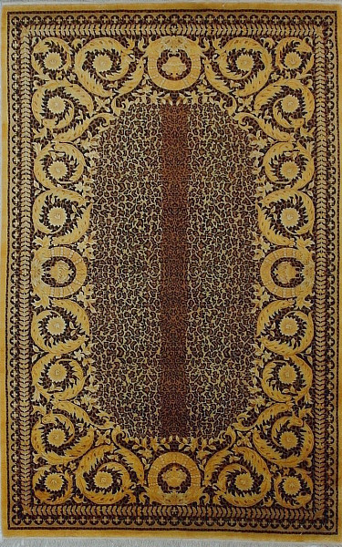 Ворсовая шерсть ковра пропитывается специальными маслами, секрет приготовления которых хранится в строгой тайне - это придает ковру особую прочность и долговечность и благодаря пропитке, ворс ковра имеет неповторимый блеск и перелив сравнимый с коврами из чистого шелка. Ковры этой серии плетет одна единственная фабрика на юге Китая (провинция Тянь Шу), именно поэтому они так редко встречаются.Низкий ворс дает возможность расположить ковер вплотную под дверь с маленьким зазором от пола.