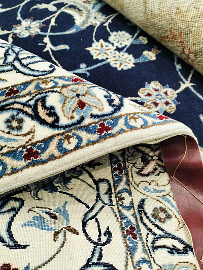 Рисунок состоит из переплетающихся мелких цветочков и веток. Характерное сочетание голубоватых тонов и цвета слоновой кости стало настоящей торговой маркой здешних мастеров. В персидском языке существуют специальные технические наименования -кхахарла, шешла и нохья, -которые обозначают кол-во нитей в пряди (соответственно 4,6 и 9). Между тем Наин, хотя и расположен неподалеку от издавна славившегося своими коврами Исфахана, сам не является древним центром ковроткачества. Многочисленные мануфактуры по производству ковров ручной работы появились здесь лишь в первой половине 20 века. Однако за короткий, по меркам истории ковра, срок город стал одним из самых знаменитых центров коврового производства.