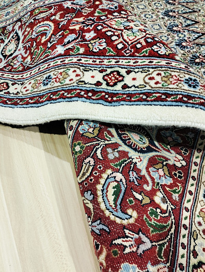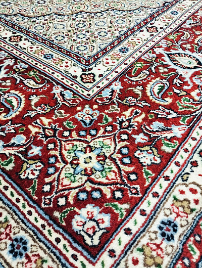 Именно в деревне Муд производятся одни из наиболее качественных и красивых персидских ковров. Чаще всего ковры из провинции Муд обладают тонким, резным орнаментом с характерным цветочным медальоном посередине. Нередко также можно встретить в узоре исторические мотивы. Цвета, которые наиболее часто встречаются в коврах Муд - это насыщенные красный, тёмно синий, коричневый. В сочетании с благородными оттенками слоновой кости они создают контрастный, чёткий рисунок. Нередко можно встретить и другие цвета. Например, зелёный. Особенно выгодно такие сочетания смотрятся на той мягкой, гладкой шерсти, которая характерна для ковров Муд. Большинство ковров изготавливаются среднего размера.