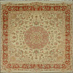Ковры в сочетании шерсти с шелком из Табриза отличаются аккуратным и кропотливым плетением, вид узла может быть как симметричным, так и асимметричным. Используемые материалы (шерсть, шелк и хлопок) - всегда очень высокого качества. Растительный орнамент, как правило, выполненный на светлой основе, может быть с медальоном в центре или же без него (афшан). Композиции с медальоном, сад, дерево жизни. Кроме того, существует местная композиция, называемая эсуми, предоставляющая собой идущие спирально побеги виноградной лозы, нежные и гибкие, связывающие воедино малые сюжетные мотивы с листьями и цветами.