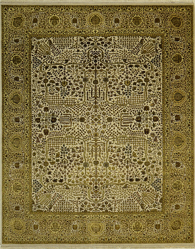 Производя ковры, Индия до сих пор находится под влиянием персидских традиций, однако в то же время ее ковраткачество обладает целым рядом принципиальных отличий. Само оформление отличается натурализмом и чувственностью, в то время как персам свойственны абстрактность, декоративность. Простая композиция рисунка, характерная для ковров из Индии, становится их важным достоинством.