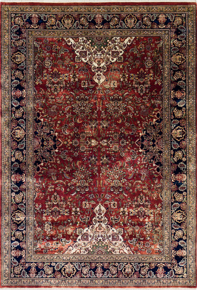 Производя ковры, Индия до сих пор находится под влиянием персидских традиций, однако в то же время ее ковраткачество обладает целым рядом принципиальных отличий. Само оформление отличается натурализмом и чувственностью, в то время как персам свойственны абстрактность, декоративность. Простая композиция рисунка, характерная для ковров из Индии, становится их важным достоинством.