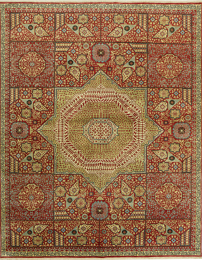 Производя ковры, Индия до сих пор находится под влиянием персидских традиций, однако в то же время ее ковраткачество обладает целым рядом принципиальных отличий. Само оформление отличается натурализмом и чувственностью, в то время как персам свойственны абстрактность, декоративность. Простая композиция рисунка, характерная для ковров из Индии, становится их важным достоинством.