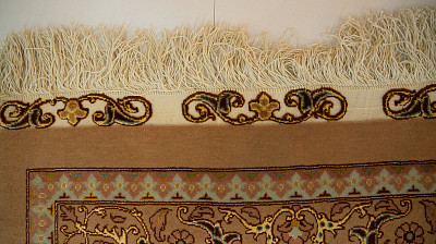 Ковры в сочетании шерсти с шелком из Табриза отличаются аккуратным и кропотливым плетением, вид узла может быть как симметричным, так и асимметричным. Используемые материалы (шерсть, шелк и хлопок) - всегда очень высокого качества. Растительный орнамент, как правило, выполненный на светлой основе, может быть с медальоном в центре или же без него (афшан). Композиции с медальоном, сад, дерево жизни. Кроме того, существует местная композиция, называемая эсуми, предоставляющая собой идущие спирально побеги виноградной лозы, нежные и гибкие, связывающие воедино малые сюжетные мотивы с листьями и цветами.